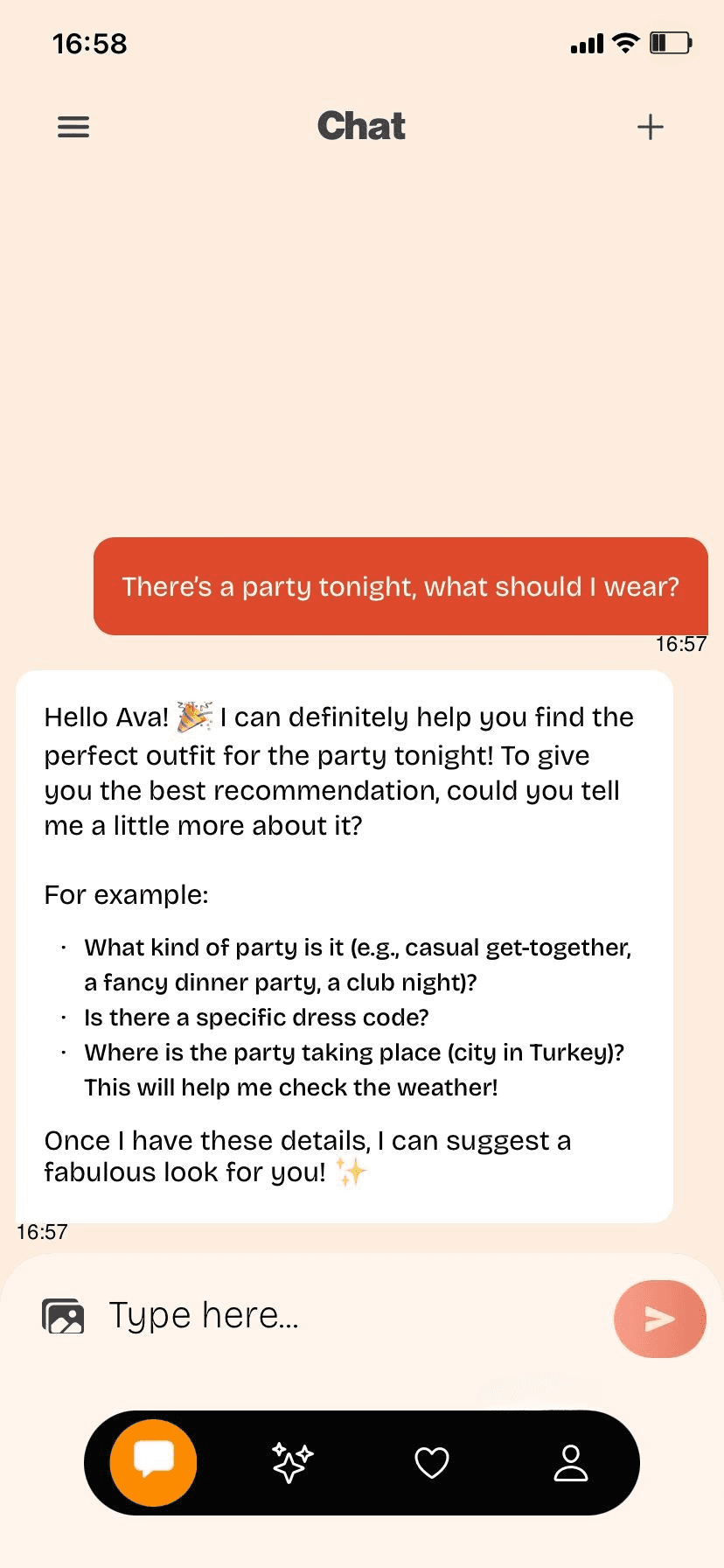 Real-time chat, visual outfits, style built around you — not just your clothes.